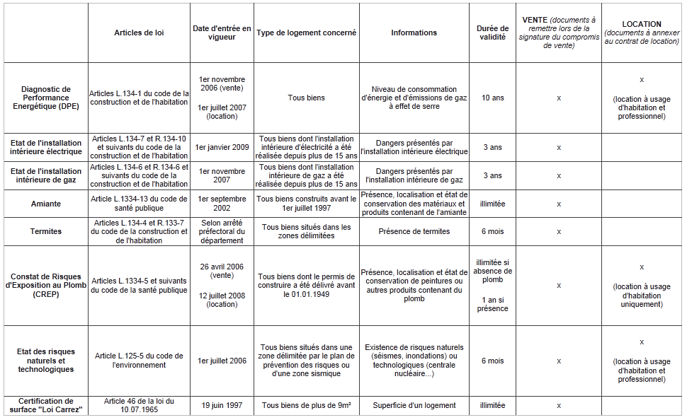 Pour savoir quels diagnostics réaliser, consultez notre tableau récapitulatif ici !