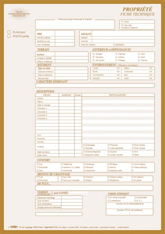 Ces fiches sont la synthèse de toutes les infomations demandées par les agences immobilères.