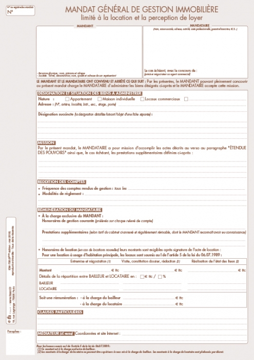 Le mandat de gestion peut être ; soit général (location, perception des loyers, suivi des travaux nécessaires …); soit restreint à la location et la perception des loyers.