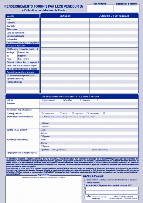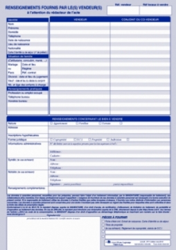 FICHE DE RENSEIGNEMENTS POUR VENDEURS