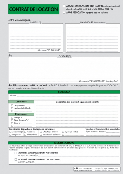 Conseil TISSOT : Si le logement sert aussi d'habitation à une personne exercant une profession libérale, utilisez notre document ILC-34.