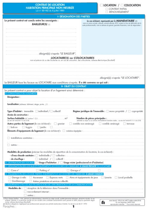 La loi n°89-462 du 6 juillet 1989 régit les baux d’habitation à titre principal. Le contrat de location doit obligatoirement contenir un certain nombre d'informations depuis le 1er août 2015. Ces obligations d'informations concernent les parties, le logement et sa description ainsi que le loyer. Certaines clauses peuvent être ajoutées si et seulement si elle ne sont pas abusives.