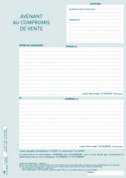 L'avenant au compromis de vente est un acte juridique permettant de revenir sur les conditions initiales du contrat sans pour autant retarder la vente. Il intervient donc entre la signature du compromis de vente et la signature de l’acte authentique. L’avenant précise les clauses du contrat sur lesquelles il y a modification. Toutes les autres clauses du contrat restent inchangées.