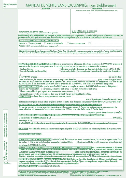 Mandat simple de vente hors agence Mandat de vente simple