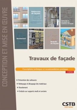 Cet ouvrage recense l'ensemble des données nécessaires à la bonne exécution des opérations de ravalement, de nettoyage et de décapage des supports anciens et récents. Il traite des enduits minéraux épais appliqués sur les parois extérieures des bâtiments en maçonnerie ou en béton. Des exemples de dispositions constructives contre le développement des salissures sur les façades sont décrits.