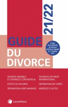 Le Guide du divorce est composé de plus de 40 fiches et de 20 modèles d'actes organisés selon un plan logique pour une consultation rapide. Il permet d'identifier les pièges à éviter et propose des conseils à tous les auxiliaires de justice (avocats, notaires et magistrats), intervenant dans le cadre de ces procédures.