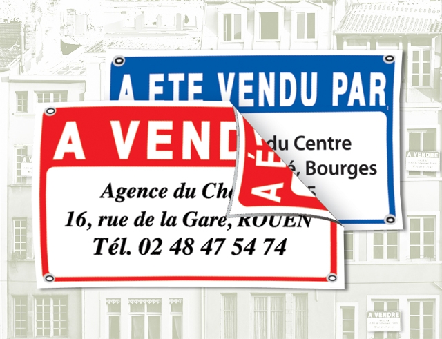 Personnalisez votre panneau en recto "A VENDRE " et en verso "A ETE VENDU PAR" !