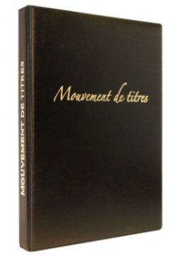 Contient les feuillets de mouvements de titres Classeur impression doré, relié et rechargeable : fiches actionnaire